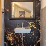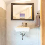 Alpenlodge Bad Mitterndorf Mit Privat Sauna villa heeft een badkamer, voorzien van een apart toilet en een douche. Een droger en handdoeken zijn inbegrepen voor extra comfort.